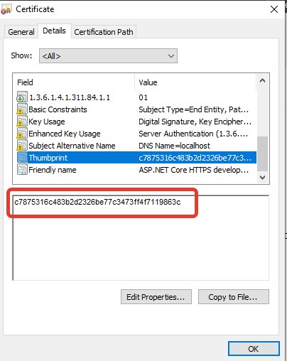 You need to copy the thumbprint guid displayed as you will need this later. In the example above, the thumbprint is: