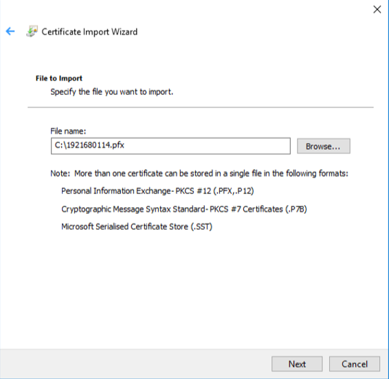 Skip this step if you have trusted SSL certificates. *If your SSL certificate format differs from pfx, then you need to convert the type of the certificate to a pfx, this can be done from your SSL certificate provider or via a related program