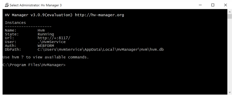 - Run the "%Program Files%\HvManager\Hvm.exe" from the Administrator Windows Command Prompt.