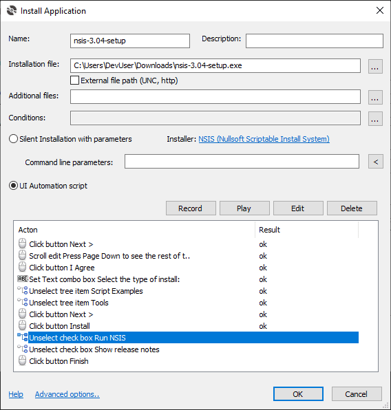 通过录制 UI 自动化脚本自动安装应用程序。